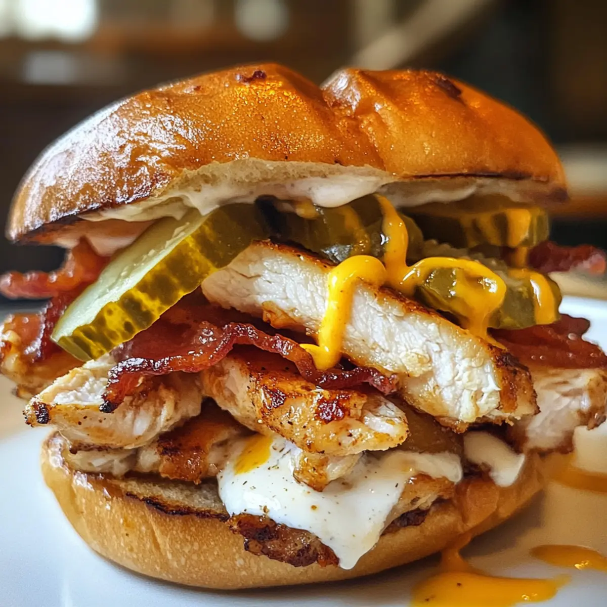 Simplicity at its finest: With just a handful of ingredients, you can whip up these delectable sandwiches in about 30 minutes. Flavor-packed goodness: The blend of tender grilled chicken, crispy bacon, and creamy cheddar is irresistible. Versatile enjoyment: Customize with your favorite toppings like spicy ranch or fresh herbs. Perfect for everyone: Whether you’re a culinary newbie or a pro, these sandwiches deliver comfort and satisfaction. Pair with slaw or chips for a complete meal, reminiscent of a Southern BBQ. Don’t forget to check out our delicious Peach Cobbler Cheesecake for an amazing dessert to complete your Southern feast!