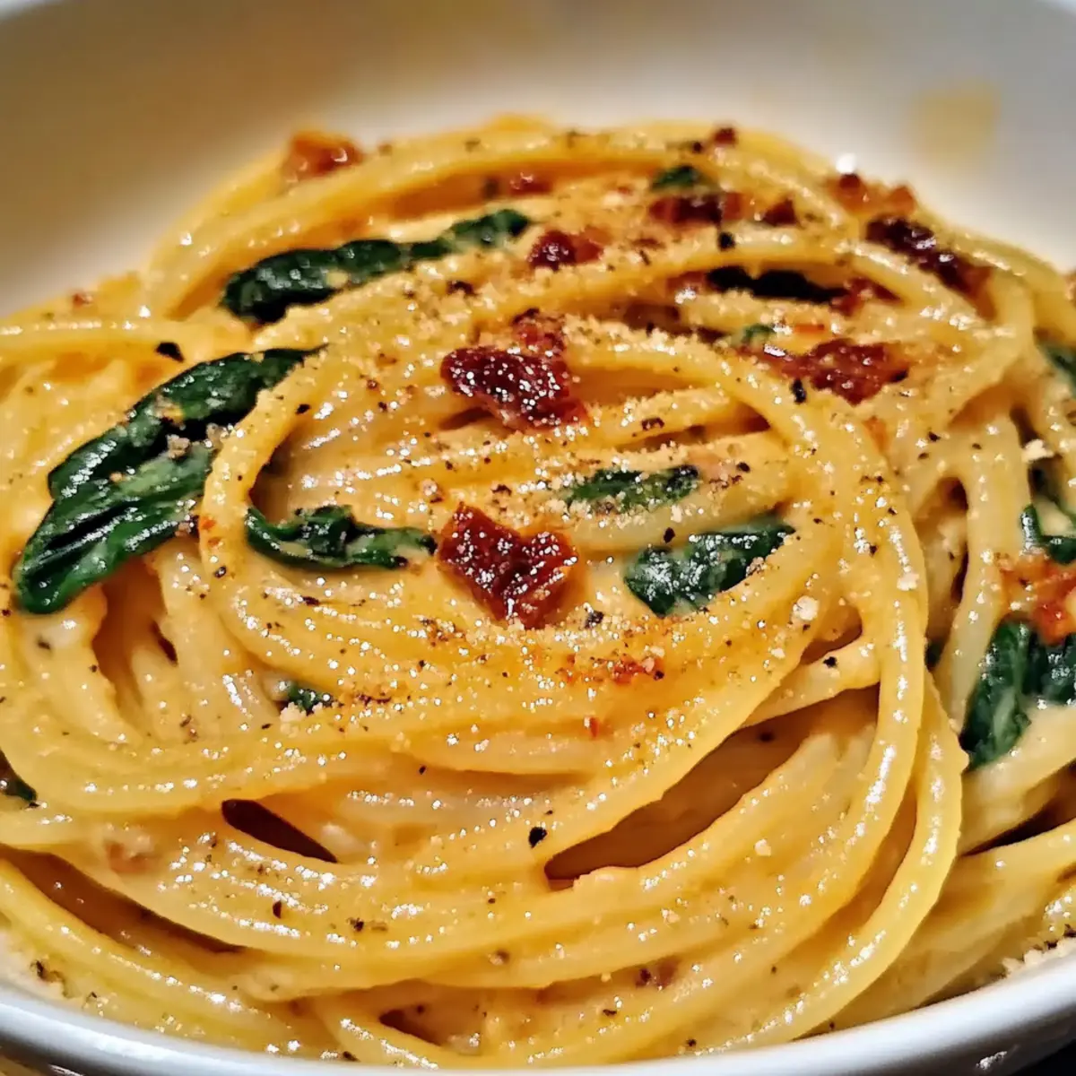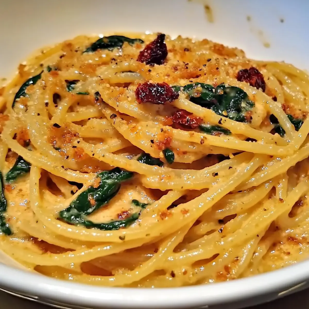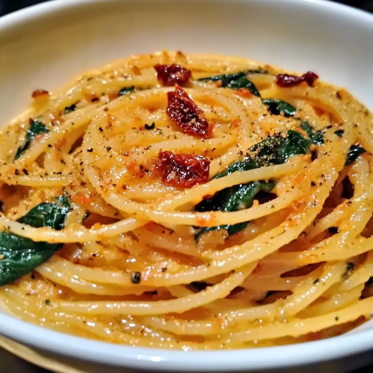 Spaghetti & Spinach with Sun-Dried Tomato Cream Sauce Bliss