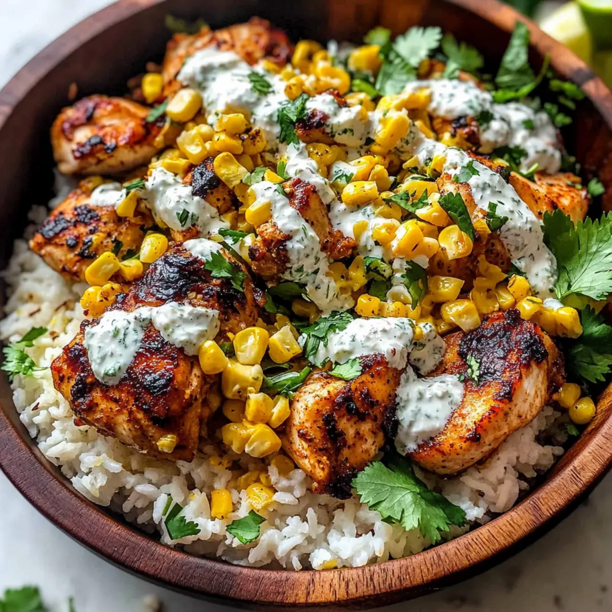 Lastly, garnish each bowl with additional crumbled Cotija cheese, fresh cilantro, and lime wedges for serving. This final touch not only adds freshness but also ensures that each bite of your Tasty Street Corn Chicken Bowl is as flavorful as it is beautiful. Serve warm and savor every delicious mouthful!